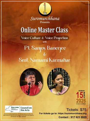 accompanied by legendary tabla maestro Padma Shri Pt. Swapan Chaudhuri and Shri Anirban Chakrabarty on harmonium. Concert organized by Suromurchhana at Scandinavia House, NYC, October 27, 2024.